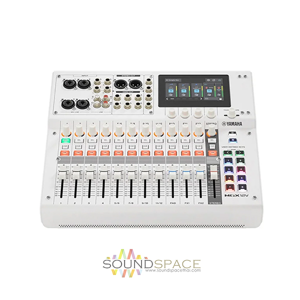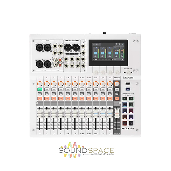 ดิจิตอลมิกเซอร์ MGX12V W (White) พร้อม Video Interface แบบสีขาว, 18-Channel Digital Mixing Console with Dual USB-C Audio/Video Interface, 4.3″ Touchscreen with 5 Control Knobs, Tactile Faders, Bluetooth Audio Input, MicroSD Card Slot, Automatic Mixing Features