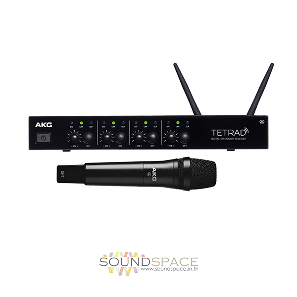 ไมโครโฟนไร้สายแบบเดี่ยว Digital Wireless 2.4 GHz ประกอบด้วย เครื่องรับสัญญาณไมค์ DSRTetrad 1 เครื่อง เครื่องส่งสัญญาณ DHTTetrad ไมโครโฟนไร้สาย AKG D5 1 ตัว