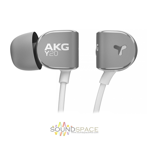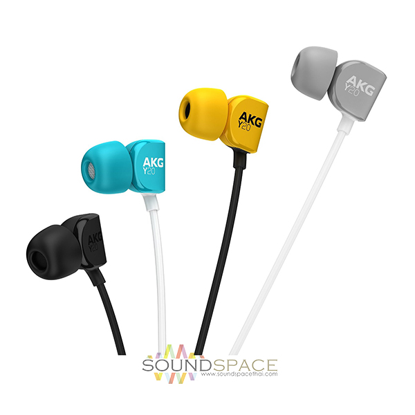 AKG Y20U หูฟัง In-Ear แบบสเตอริโอ, Closed-back headphones, ตอบสนองความถี่ 13 Hz-22.5 kHz, Sensitivity 115dB SPL/V, Impedance 16 ohms มี3ขนาด(S/M/L), มี 4 สี สีดำ, สีเทา, สีฟ้า, สีเหลือง
