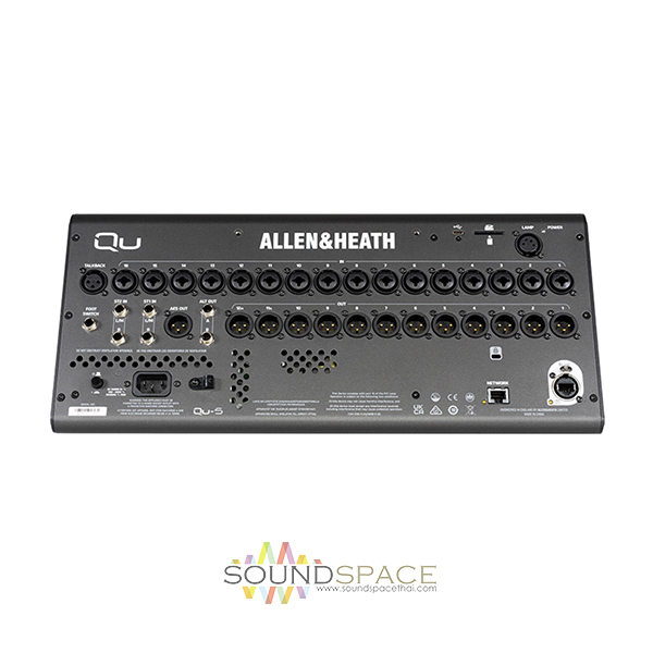 มิกเซอร์ดิจิตอล Allen & Heath Qu-5, 32-channel Digital Mixer, 24-bit/96kHz, with 96kHz XCVI Core, 16 Mic Preamps, 17 Motorized Faders, 7″ Capacitive Touchscreen, and 32-in/32-out USB-C Audio Interface, SLink Port for Remote Audio & Expansion