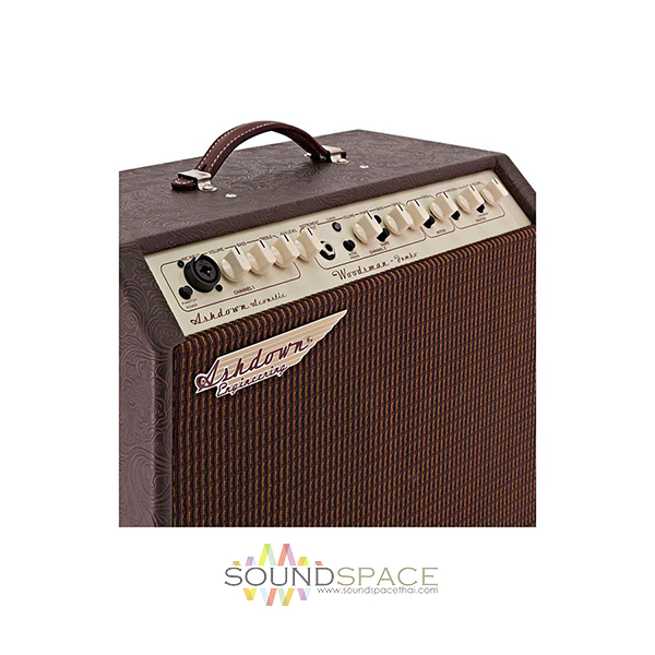 ตู้แอมป์กีตาร์อะคูสติก Ashdown Woodsman Jumbo เหมาะสำหรับกีตาร์โปร่งหรือไมโครโฟน มีขนาดดอกลำโพง 8 นิ้ว 2 ดอก Celestion with horn 2 ชาแนล กำลังขับ 65 วัตต์, Controls 3-band EQ, Built-in reverb