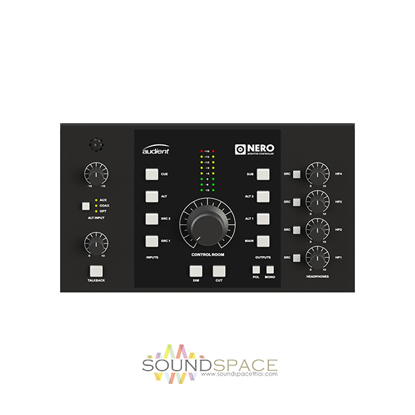 มอนิเตอร์คอนโทรล Audient NERO Monitor Controller with 2 Stereo Line-level Inputs 1 Cue Mix Input, 2 Aux Inputs, Optical and Coaxial S/PDIF Inputs, 3 Stereo Speaker Outputs, 1 Sub Output, 4 Headphone Outputs, Talkback with Internal Microphone and Dim