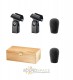 The AT4041SP Studio Microphone Pack from Audio-Technica consists of two AT4041 Cardioid Condenser Microphones, two stand clamps, two windscreens, and a protective wooden storage case. The microphones feature a small diaphragm and are suitable for instrument recording. They can be used with drums, acoustic guitar, piano, and similar applications.