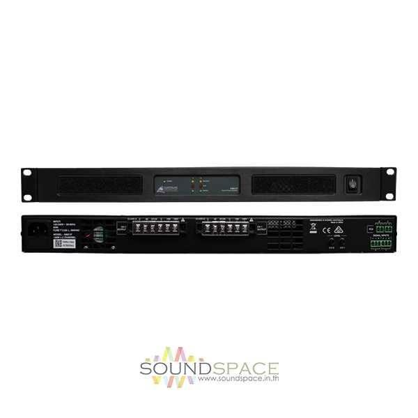 The Australian Monitor AM21P is a 1 RU two channel Class D power amplifier design. The AM21P delivers 200 watts per channel into 100 volt, 70 volt or 4 ohms. The AMD21P features front panel signal presence, clip and fault indication per channel, rear panel level controls and remote master VCA per channel.