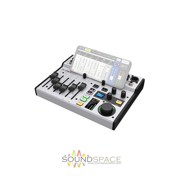 ดิจิตอลมิกเซอร์ BEHRINGER FLOW8 ขนาดเล็กพร้อมบลูทูธ 8-Input Digital Mixer with Bluetooth Audio and App Control, 60 mm Channel Faders, 2 FX Processors and USB/Audio Interface, All channels with 4-band EQ and compressor, 2 FX