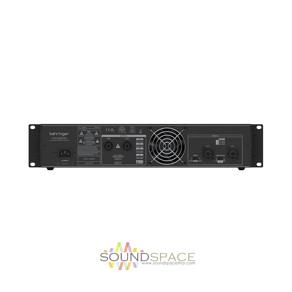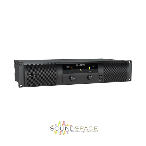 เพาเวอร์แอมป์ เครื่องขยายเสียง Behringer NX3000 เป็นเพาเวอร์แอมป์แบบ Class-D Technology มีกำลังขับ 2 x 1500 วัตต์ into 2 Ohms , 2 x 900 วัตต์ into 4 Ohms , 2 x 440 วัตต์ into 8 Ohms, Built-In Stereo Crossover, ตอบสนองความถี่ 20 Hz to 20 kHz, Balanced XLR-1/4″ Combo Inputs