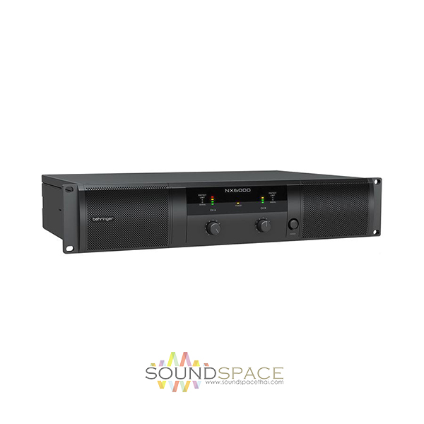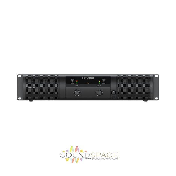 เพาเวอร์แอมป์ เครื่องขยายเสียง Behringer NX6000 เป็นเพาเวอร์แอมป์แบบ Class-D Technology มีกำลังขับ 2 x 3000 วัตต์ into 4 Ohms , 2 x 1600 วัตต์ into 8 Ohms, Built-In Stereo Crossover, ตอบสนองความถี่ 20 Hz to 20 kHz, Balanced XLR-1/4″ Combo Inputs