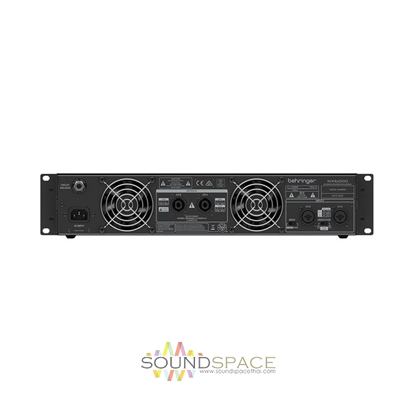 เครื่องขยายเสียง เพาเวอร์แอมป์ Behringer NX6000 เป็นเพาเวอร์แอมป์แบบ Class-D Technology มีกำลังขับ 2 x 3000 วัตต์ into 4 Ohms , 2 x 1600 วัตต์ into 8 Ohms, Built-In Stereo Crossover, ตอบสนองความถี่ 20 Hz to 20 kHz, Balanced XLR-1/4″ Combo Inputs