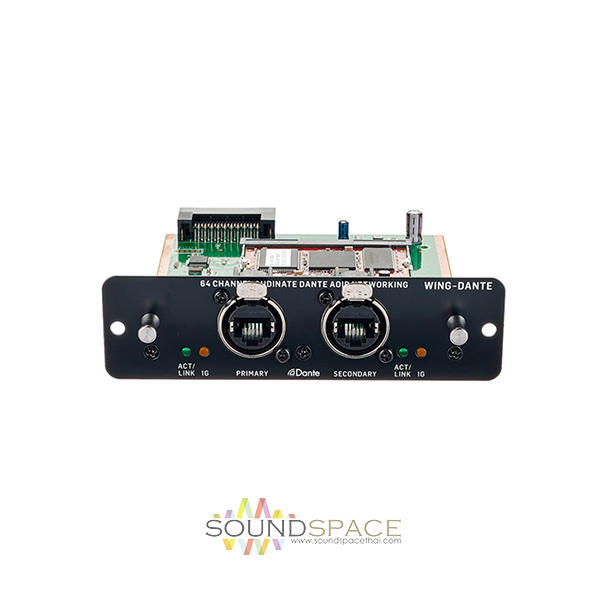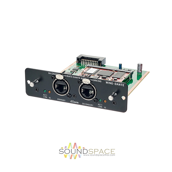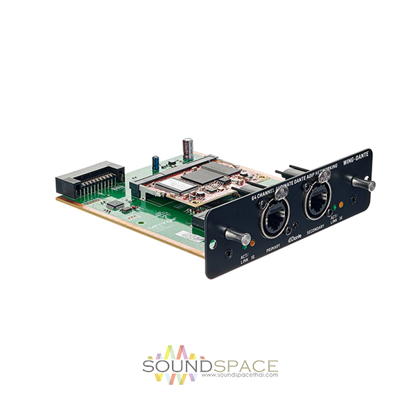 The WING-DANTE card utilizes 24-bit signal transmission with sample-accurate synchronization and low latency, ensuring the highest audio integrity. Its secondary input allows you to set up a seamless, redundant network access.