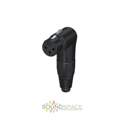 The X3FR-BK 3-pin female XLR right-angled connector features a durable metal housing designed for long-lasting performance. Its protective chuck and rubber sleeve offer excellent strain relief, while the high-quality solder contacts ensure low resistance, delivering pristine signal flow. With these robust features, your cables will remain reliable, show after show.
