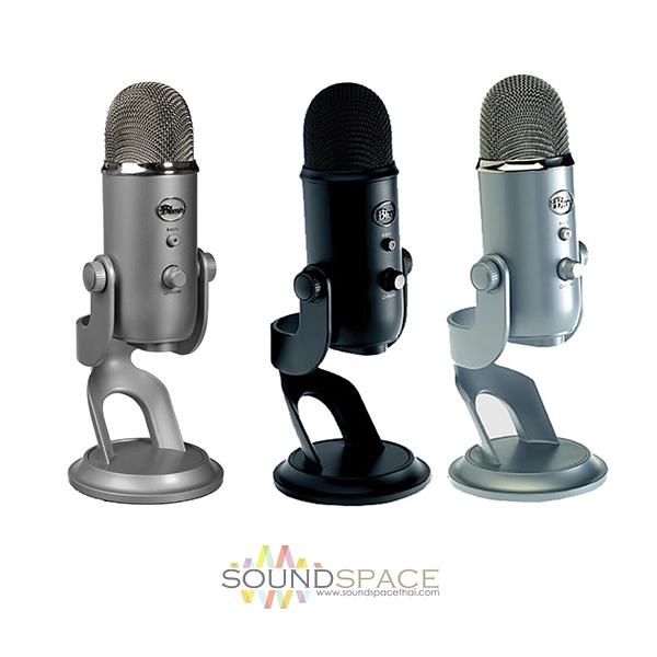 BLUE YETI USB สำหรับการบันทึกเสียงอย่างง่ายหรือนอกสถานที่กับ Notebook ต่อสาย USB เข้าคอมพิวเตอร์สามารถบันทึกเสียงได้โดยไม่จำเป็นต้องต่อผ่านอุปกรณ์อื่นๆอีก มี3สี Silver, สี Blackout, และสี Platinum