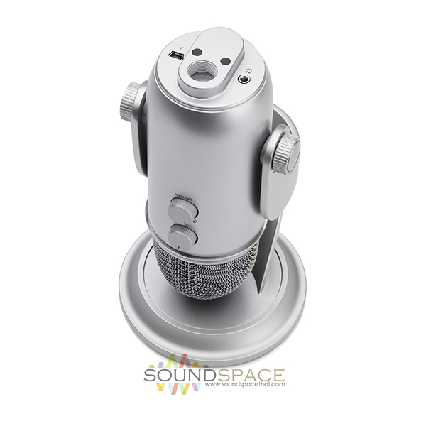 BLUE YETI USB เป็นไมค์ USB สำหรับการบันทึกเสียงอย่างง่ายหรือนอกสถานที่กับ Notebook ต่อสาย USB เข้าคอมพิวเตอร์สามารถบันทึกเสียงได้โดยไม่จำเป็นต้องต่อผ่านอุปกรณ์อื่นๆอีก มี3สี Silver, สี Blackout, และสี Platinum