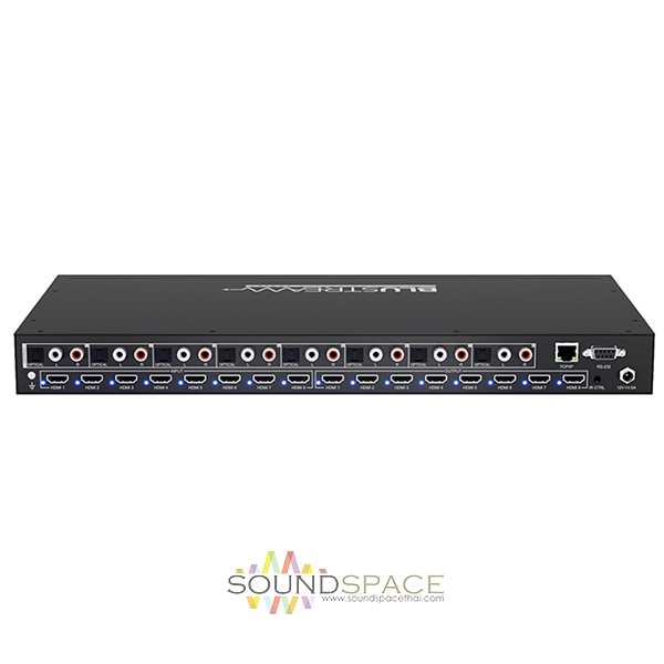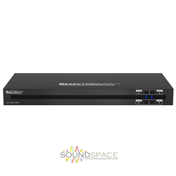 เครื่องสลับสัญญาณ BLUSTREAM CMX88CS HDMI แบบ 8×8 พร้อมถอดสัญญาณเสียง 8x HDMI inputs which can be independently routed to 8x HDMI outputs, Supports 4K UHD video including HDR, Control via front panel, IR, RS-232 & TCP/IP