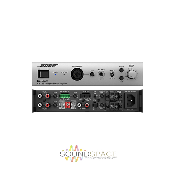 เครื่องขยายเสียง BOSE FreeSpace IZA 250-LZ เป็นแอมป์แบบ 2 ชาแนล High-Quality Class-D Amplifier มีกำลังขับ 2 x 50วัตต์, Provides Signal Processing and Routing, For Background/Foreground Music & Paging