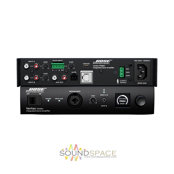 เครื่องขยายเสียง BOSE Veritas 1100BH Smart Mixer Amplifier 1-channel มีกำลังขยาย 100 วัตต์ Class-D Amplifier, Supports high-impedance 70V/100V applications with DSP, 24-Bit / 48 kHz AD/DA Conversion Bluetooth, and OLED Screen