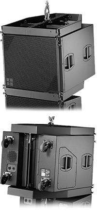 The cardioid dispersion pattern resulting from this arrangement avoids the distribution of energy behind the system, providing the greatest accuracy of low frequency reproduction and reducing the energy dispersed into unwanted areas. The Y-SUB is fitted with three point rigging hardware and can be flown in a column of purely Y subwoofers, at the top of a Y array or used in a ground stacked setup.