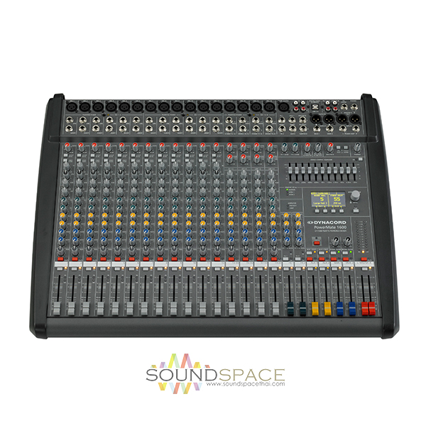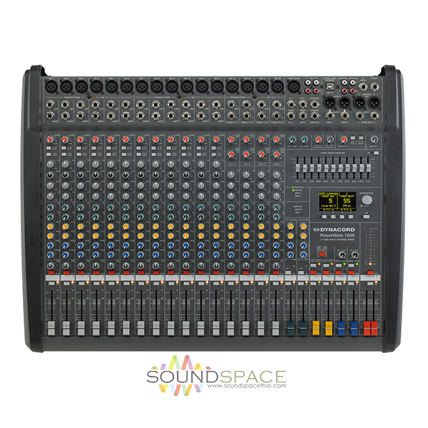 เครื่องผสมสัญญาณเสียงแบบมีกำลังขยาย เพาเวอร์มิกเซอร์ DYNACORD PowerMate เวอร์ชั่นที่3 PM1600-3, กำลังขับ 2 x 1000 W/4 Ohms RMS, 12 MIC/LINE inputs, 4 stereo MIC/LINE inputs, 6 AUX-busses, editable effects