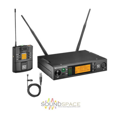 The EV RE3-BPOL-T (Band T : 803 to 806 MHz) Bodypack UHF wireless set featuring OL3 omnidirectional lavalier microphone for voice performance and presentations.