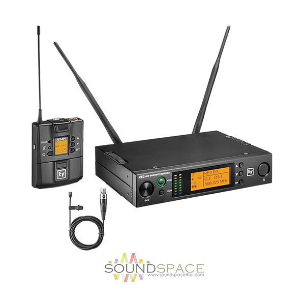ชุดไมค์ลอยแบบหนีบปกเสื้อ EV RE3-BPOL-T, เป็นชุดไมโครโฟนไร้สายย่าน UHF ตรงกับความถี่ที่ กสทช. อนุญาติให้ใช้ (803 to 806 MHz) ประกอบด้วยเครื่องรับ RE3-RX Diversity Receiver 1 เครื่อง, เครื่องส่ง RE3-BPT Bodypack Transmitter 1 เครื่อง พร้อมไมโครโฟน OL3 1 ตัว