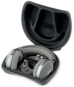 The two supplied OFC copper 24 AWG cables—one with a 1/4″ connector and the other with a 3.5mm jack—are detachable and connect to the locking 3.5mm sockets at the base of the earcups. Two spare ear cushions are provided along with a hardshell carry case.