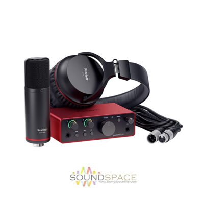 ชุดอุปกรณ์บันทึกเสียง Focusrite Scarlett Solo Studio (4th Gen) Pack ราคาประหยัดในชุดประกอบด้วย USB-C ออดิโออินเตอร์เฟส Scarlett Solo (4th-Gen) 1 เครื่อง, หูฟัง SH-4500 Headphones1 ตัว, ไมโครโฟน CM25 MkII Microphone 1ตัว, พร้อมโปรแกรมสำหรับบันทึกเสียง