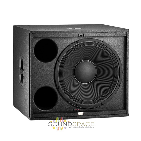 ตู้ลำโพงซับเบสกลางแจ้งแบบมีกำลังขยาย 1000W Class D Amplification JBL EON 618s ตัวตู้ทำด้วยไม้ ขนาดดอกลำโพง 18″, ตอบสนองความถี่ (- 3 dB): 42.5 Hz – 150 Hz, Crossover Presets: 80 Hz, 100 Hz , 120 Hz