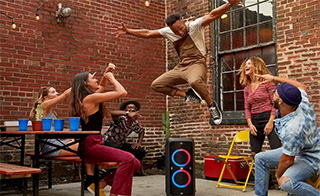The speaker has two 6.5″ woofers and three 2.25″ tweeters that deliver up to 120W of RMS power. Integrated carry handles help make it easy to move the PartyBox around, and an included 12V car adapter and built-in 18-hour battery let you use the speaker nearly anywhere.