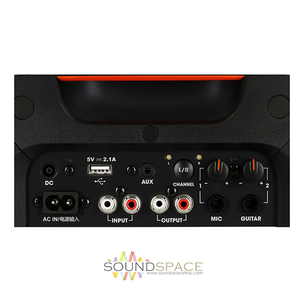 The JBL PartyBox 300 Bluetooth Speaker. Bluetooth connectivity also allows you to pair two compatible speakers together, or you can daisy-chain multiple speakers and systems with the RCA audio output. The PartyBox features RCA and 1/8″ audio inputs for traditional wired devices and a USB input for playback from compatible drives, as well as dedicated 1/4″ microphone and 1/4″ guitar jacks.
