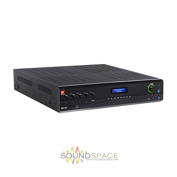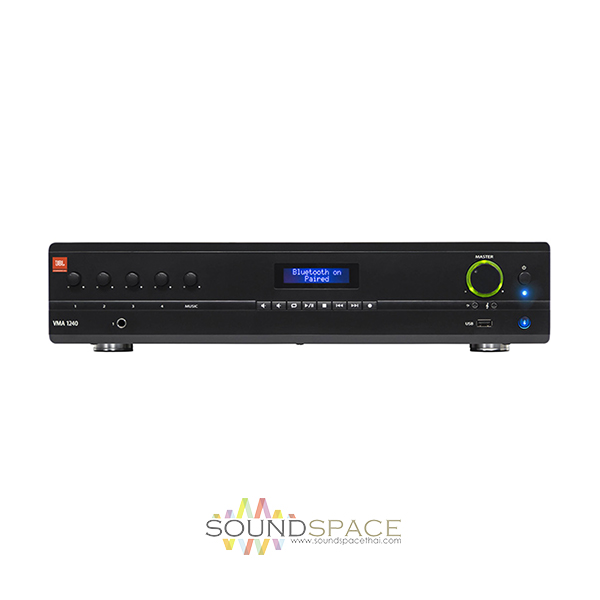 The JBL VMA1240 is a Commercial Series Bluetooth-enabled mixer/amplifier designed to provide flexible multi-source mixing and amplification for installation in restaurants, educational institutions, fitness centers, and retail stores.