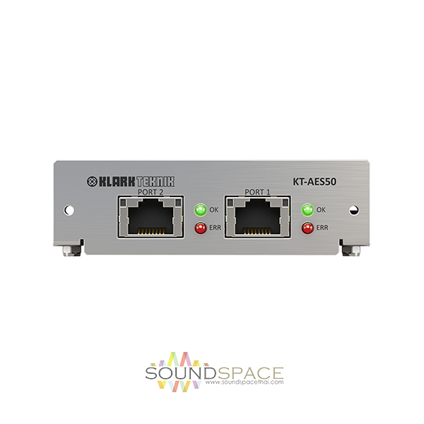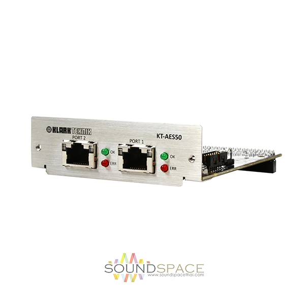 เน็ตเวิร์คโมดูล KLARK TEKNIK KT-AES50 กับ DN9650 และ DN9652, รองรับ Midas Neutron-NB, รองรับรูปแบบ Cirrus CM-1, AES50 แบบสองพอร์ต, 48 ช่องสัญญาณแบบสองทิศทางที่ 48/96 kHz, ทำงานแบบคู่, การทำงานแบบซ้ำซ้อนที่ 48 kHz, สามารถตั้งค่าสัญญาณนาฬิกาภายนอกได้