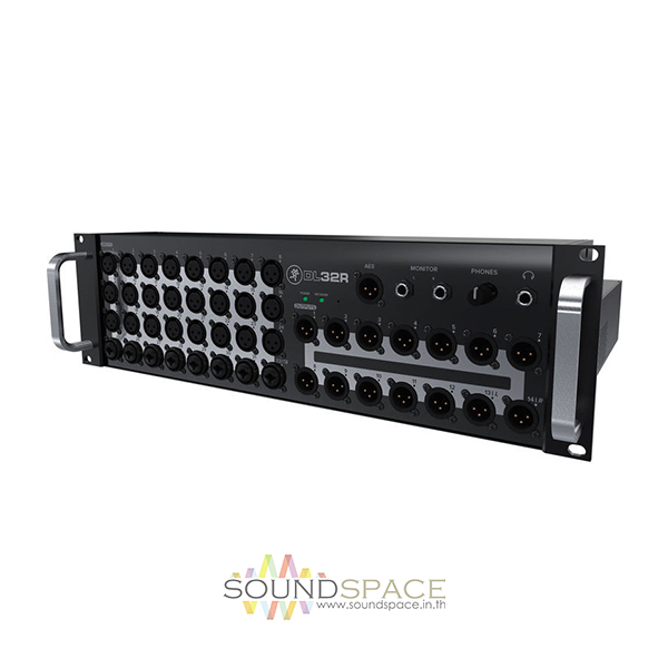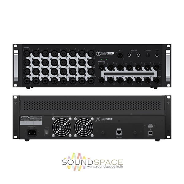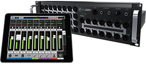 The DL32R features 32 microphone inputs (24 XLR + 8 XLR/TRS combo) with high-quality Onyx+ recallable preamps, capable of handling full bands that include guitars, full drum sets, vocals, and much more. It also has 14 fully assignable XLR outputs for connection to amplifiers, powered speakers, wireless transmitters for in-ear monitoring. The DL32R also allows up to 10 performing musicians to mix their own monitors using their iPhone, iPad or iPod touch.