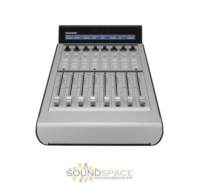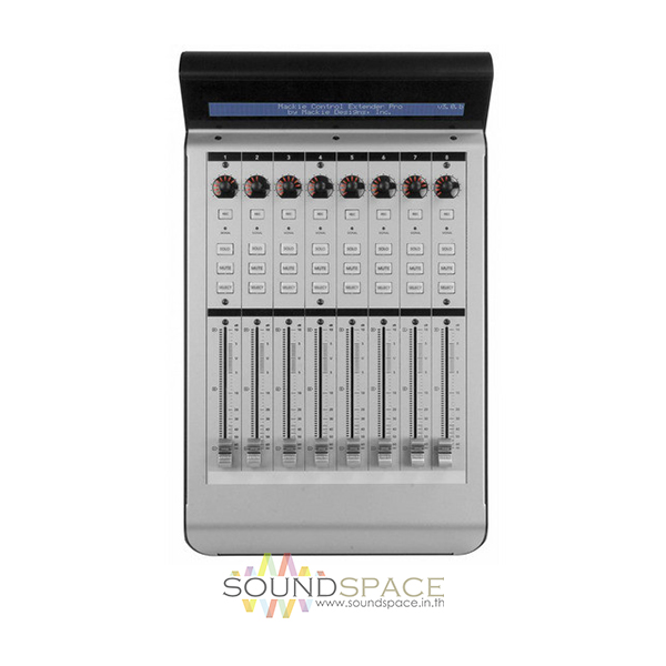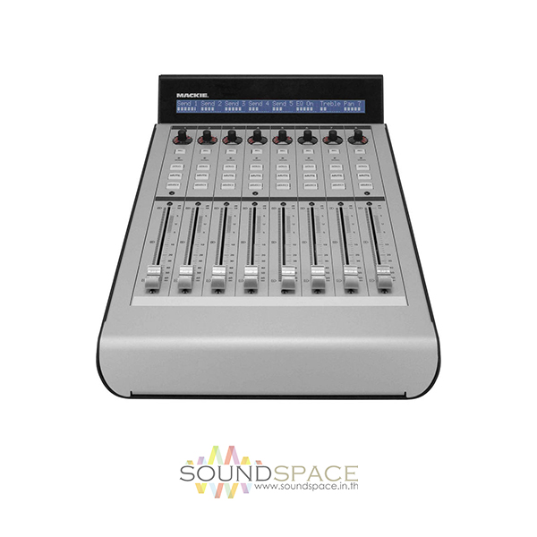 Each channel has a 100mm motorized fader, a Mackie rotary V-Pot, surrounded by an LED collar to indicate the current value, dedicated buttons for record ready, solo, mute, channel select, and signal present LED. Multiple extender units can be used together with a MCU Pro to emulate a large-scale control surface.