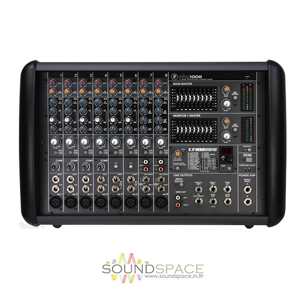 เครื่องประกอบสัญญาณเสียงแบบมีกำลังขยายในตัว MACKIE PPM1008 มีกำลังขยายข้างละ 800 เมตรสูงสุด, 8-input, 3-Band EQ with Sweep, มาพร้อมกับ Compressors และเอ็ฟแฟรี่คร้องในตัว