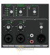 2 x RCA female, stereo input 1 x XLR male, thru (active in the “mix” position, passive in the “out” position) 1 x 3-Pin IEC, AC power in |