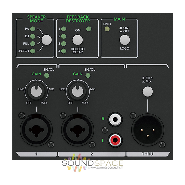 The speaker features two XLR-1/4″ Wide-Z combo jacks, two RCA inputs, and one XLR “thru”. It also features two-way digital crossover, driver time alignment, and phase correction. The speaker is flyable and can be hanged using only standard M10 eyebolts.