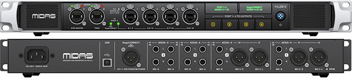 เครื่องกระจายสัญญาณ AES50 Midas HUB4 เป็นเครื่องกระจายสัญญานแบบเข้าแร็ค 16 Balanced Analog Outputs for IEM Transmitters , PoE Remote Powering for Four Devices, Supports Personal Mixers and Stageboxes, AES50 Ports  In, Thru, and Four Outputs