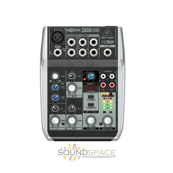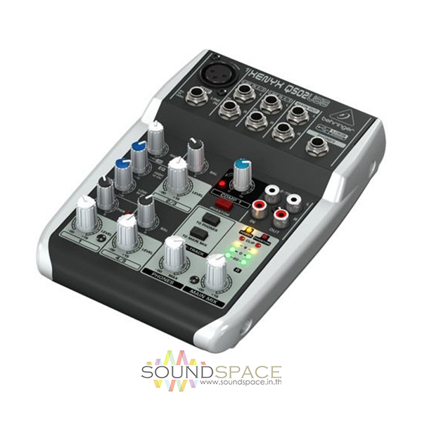 เครื่องผสมสัญญาณเสียง XENYX Q502USB 5-input, 2-bus mixer, onboard +15V phantom powerBuilt-in One-Knob Compressors, USB Audio Interface: 2-in/2-out