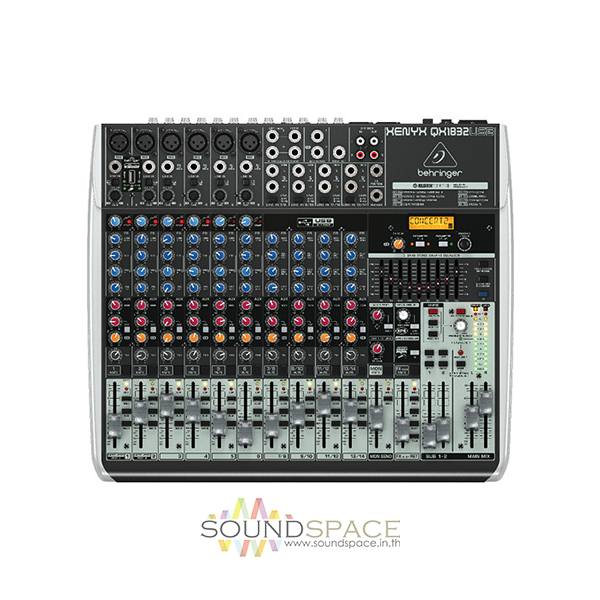มิกเซอร์ แบบอนาล็อค Behringer Xenyx QX1832USB เป็นมิกเซอร์แบบมีช่องสัญญานขาเข้า 18-Input 3/2-Bus Mixer with XENYX Mic Preamps & Compressors, KLARK TEKNIK Multi-FX Processor
