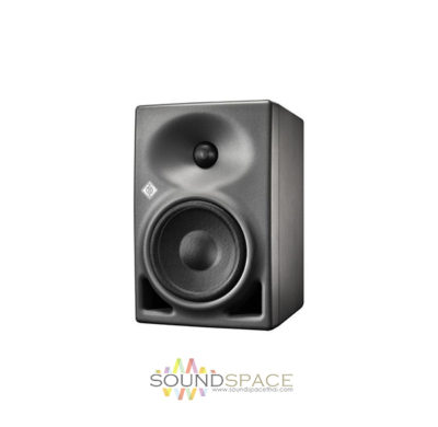 The Neumann KH 120-A Studio Monitor combines a 1″ titanium fabric dome tweeter powered by 50 W RMS (80 W peak) of analog amplification with a 5.25″ long throw composite sandwich cone bass driver powered by 50 W RMS 80 W peak) analog amplification with dual front panel bass ports. The two speaker drivers are mounted in an elliptical mathematically modeled dispersion waveguide for smoother off-axis response and a more forgiving sound signature in different acoustical environments.