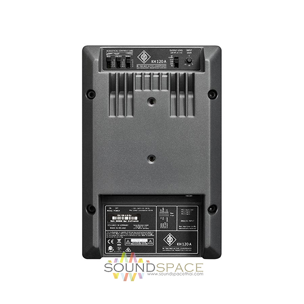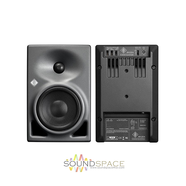 ลำโพงสตูดิโอสำหรับห้องอัดเสียง Neumann KH 120-A เป็นตู้ลำโพงแบบ Active ขนาดดอกลำโพง 5.25 นิ้ว Composite Sandwich Woofer Cone, เสียงแหลม 1 นิ้ว Titanium Dome Tweeter, มีกำลังขับ 160 Peak Analog AB Amplifier, ตอบสนองความถี่ 52 Hz to 21 kHz ± 3 dB
