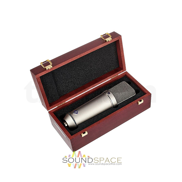 ไมค์สตูดิโอสำหรับงานบันทึกเสียง Neumann U87 Ai เป็นไมโครโฟนแบบคอนเด็นเซอร์, Variable large diaphragm microphone, รูปแบบการรับเสียง Cardioid, Figure-8, Omnidirectional ตอบสนองความถี่ 20 Hz to 20 kHz, Impedance 200 Ohms, Switchable low frequency roll-off, Switchable 10 dB pre-attenuation, มี 2 สี สีนิเกิลและสีดำ