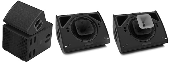 Housed in a curvilinear enclosure of custom birch and poplar plywood, The P12 employs a purpose-designed 12″ LF Neodymium driver and 3″ diaphragm HF driver in a coaxial configuration. The compact cabinet measures just 531mm x 432mm x 317mm, and can be deployed in vertical or horizontal (wedge monitor) configurations, with HF directivity set to match the specific application.