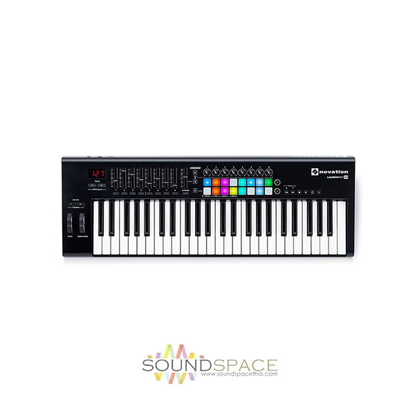 คีย์บอรด์คอลโทรลเลอร์ Novation Launchkey 49 MKII, 49-Velocity Sensitive Keys, 16 RGB Backlit Velocity Sensitive Pads, 8 Knobs & 9 Slider, Transport Controls, Instantly Maps to Multiple DAWs, 4GB of Loopmasters Samples, Ableton Live Lite, USB Powered, Launchpad & Launchkey iPad Apps, Mac, PC, & iPad Compatibility