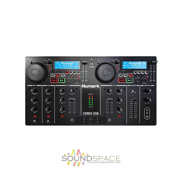 เครื่องเล่น CD Numark CDMIX USB Dual CD/MP3 Players with USB Playback, Resolution 44.1 kHz / 16-Bit, Built-In Effects, 2-Channel Mixer w/ Gain and 3-Band EQ, Aux Input with Stereo RCA and Mic 2, Balanced Outputs, Dual Headphone Output: 1/4″ and 1/8″