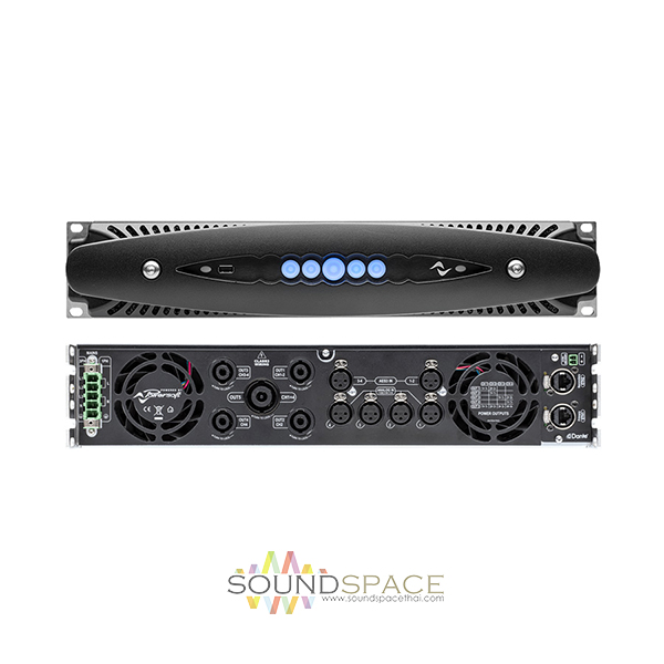 แอมป์ขยายเสียง Powersoft X4L เป็นเพาเวอร์แอมป์แบบ 4 ชาแนล พร้อม DSP and Ethernet มีกำลังขับ 4800 Watts per Channel @ 8 Ohms, 6800 Watts per Channel @ 4 Ohms, 8200 Watts per Channel @ 2 Ohms, Channel Routing System, 3 Phase Power Supply, 2U Rack Space