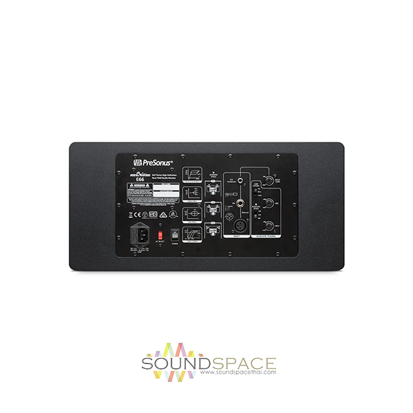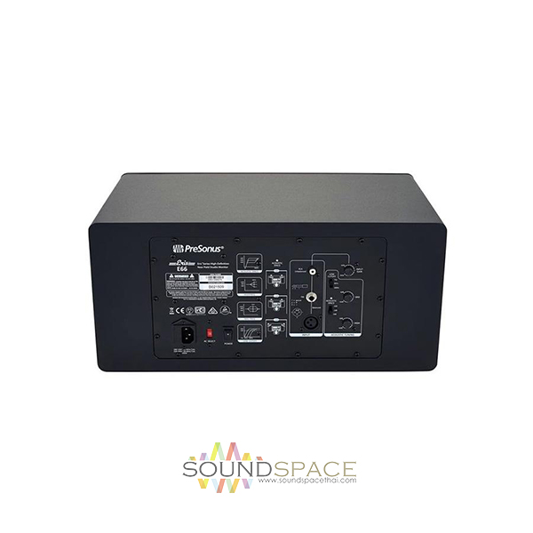 ลำโพงมอนิเตอร์สำหรับห้องบันทึกเสียงแบบมีกำลังขยายในตัว PreSonus Eris E66 Nearfield Monitor ขนาดดอกลำโพง 6.5 นิ้ว 2 ดอก mid-woofer with Kevlar cone เสียงแหลม 1.25 นิ้ว tweeter with silk dome, มีกำลังขับ  140 วัตต์ of Class A/B bi amplification, ตอบสนองความถี่ 45 Hz to 22 kHz