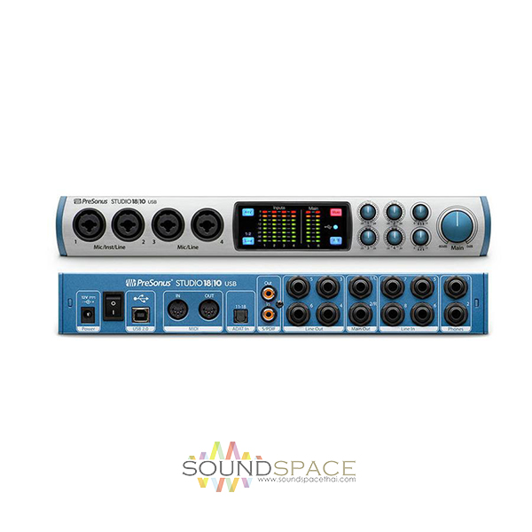 USB ออดิโออินเตอร์เฟส PreSonus Studio 1810 8 x Channels of ADAT Inputs, 6 x 1/4″ TRS Balanced Outputs, High-Speed USB 2.0 Computer Interface, 24-Bit / 192 kHz