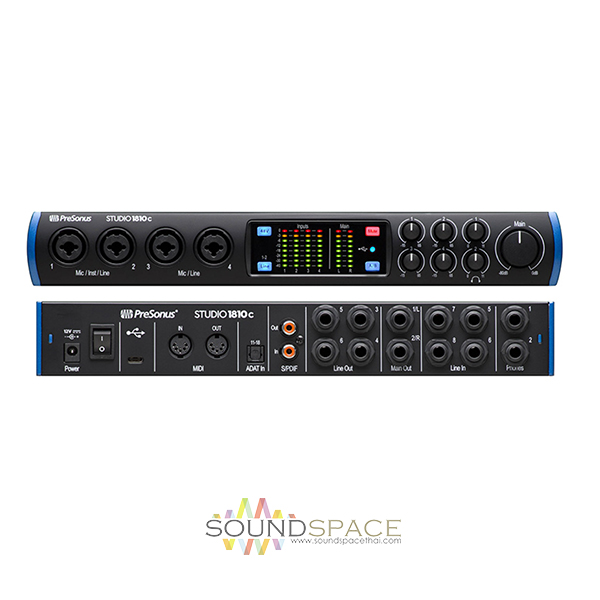 ออดิโออินเตอร์เฟส PreSonus Studio 1810C 18-in/8-out USB-C Audio Interface with 4 XMAX Preamps, ADAT I/O, S/PDIF I/O, MIDI I/O, DSP Monitor Mixer, Studio One Artist DAW, and Studio Magic Plug-in Suite – Mac/PC, Musicians, Small Bands, Producers