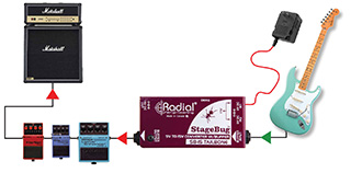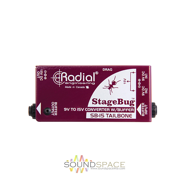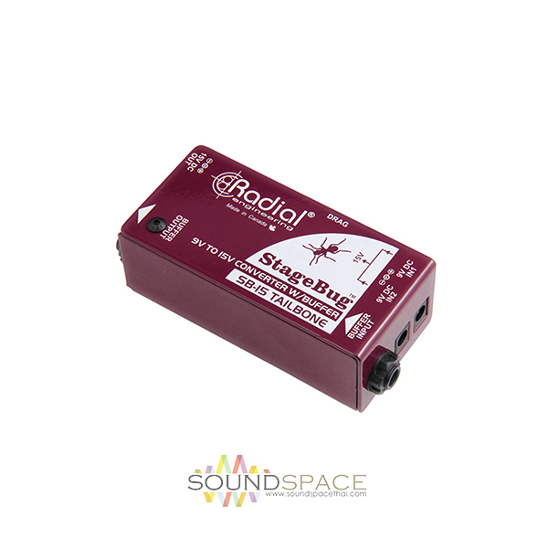 อุปกรณ์บัฟเฟอร์สัญญาณ Radial StageBug SB-15, 100% Discrete Class-A Buffer, Drag Control Load Correction, Drives Pedals to 50′, Converts Two 9V Supplies to 15 VDC, Drag Control load correction adjusts the load on the pickup for a more natural sound and feel