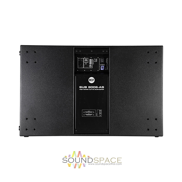 ลำโพงซับเบสแบบมีกำลังขยายในตัว RCF SUB 8006-AS มีขนาดดอกลำโพง 18 นิ้ว 2 ดอก, มีกำลังขับ 5000 วัตต์ Peak, 2500 วัตต์ RMS, ตอบสนองความถี่ 30 Hz – 120 Hz, ทำความดังสูงสุดได้ 137 dB max SPL